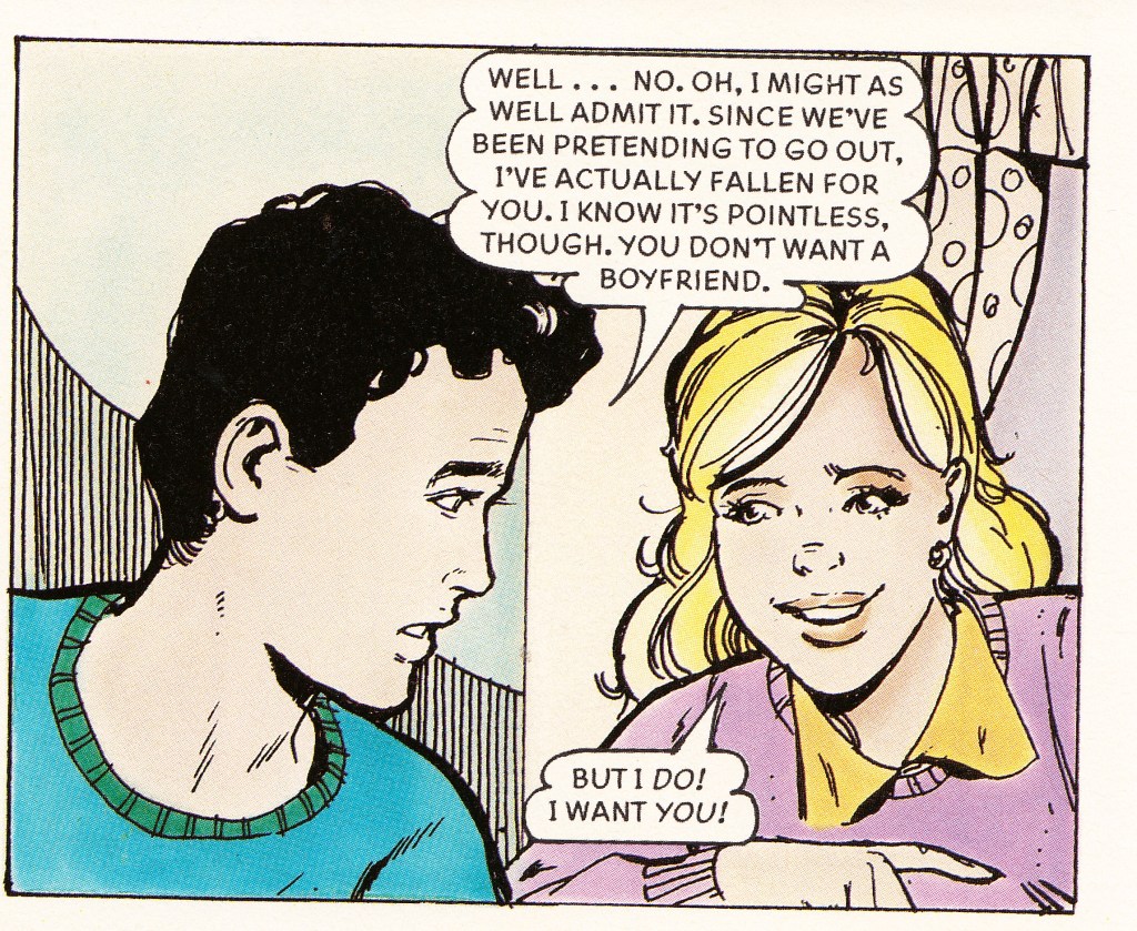 Narrated by Stacey Barratt, this is another romance story where Stacey’s friends try to pair her off with a boy, but she doesn’t want a boyfriend. Her classmate, Robin Fletcher, has a similar problem where his friends try to pair him off with a girl when he doesn’t want a girlfriend. He then suggests that he and Stacey pretend to go out so that their friends won’t pair them off with anyone else. During the pretence, Stacey and Robin actually end up falling for each other. At the end, Stacey and Robin become girlfriend and boyfriend for real.
